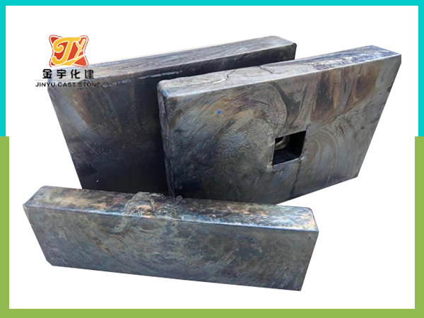 鑄石板材有普形、普異形、特異形三大類(lèi)。普形板材有矩形板、梯形板、六角形板、扇形板、圓形板等;普異形板有弧形板、溜槽鑲板、灰渣溝直溝鑲板等;特異形板有:雙曲面板、錐面板、篩蓖條鑄石板及灰渣溝彎溝、變徑、匯合口、二岔口、三岔口板等。繁多的設(shè)備襯里鑄石板均包括在上述類(lèi)別的制品在內(nèi)。